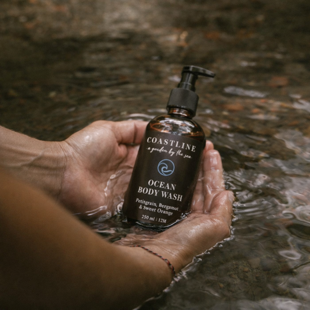 Moldada pelo sal no ar, pelo sol na pele e pelos jardins selvagens, a Coastline cria rituais em pequenos lotes, com ingredientes cuidadosamente escolhidos e aprovados pelo oceano.